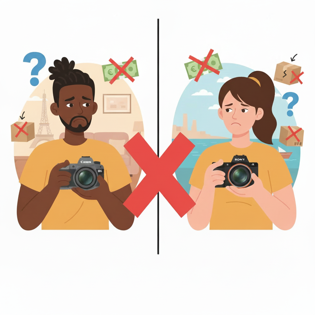 Imagine Alex, photographe amateur à Paris, avec un Canon EOS R6 (1 800 €), et Emma, vidéaste à Marseille, avec un Sony A7 IV (2 200 €). L’échange parfait en théorie, mais en pratique… ça bloque.